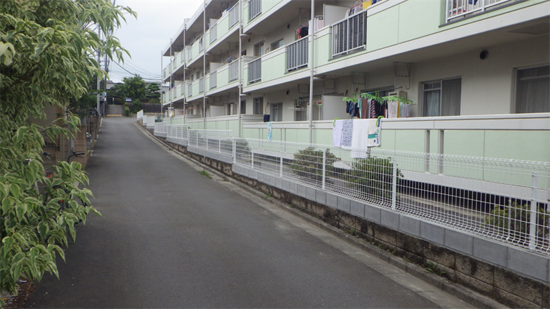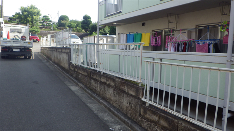 集合住宅の破損した外壁及びフェンスを撤去し、新たにブロックを設置してフェンスを新設しました。